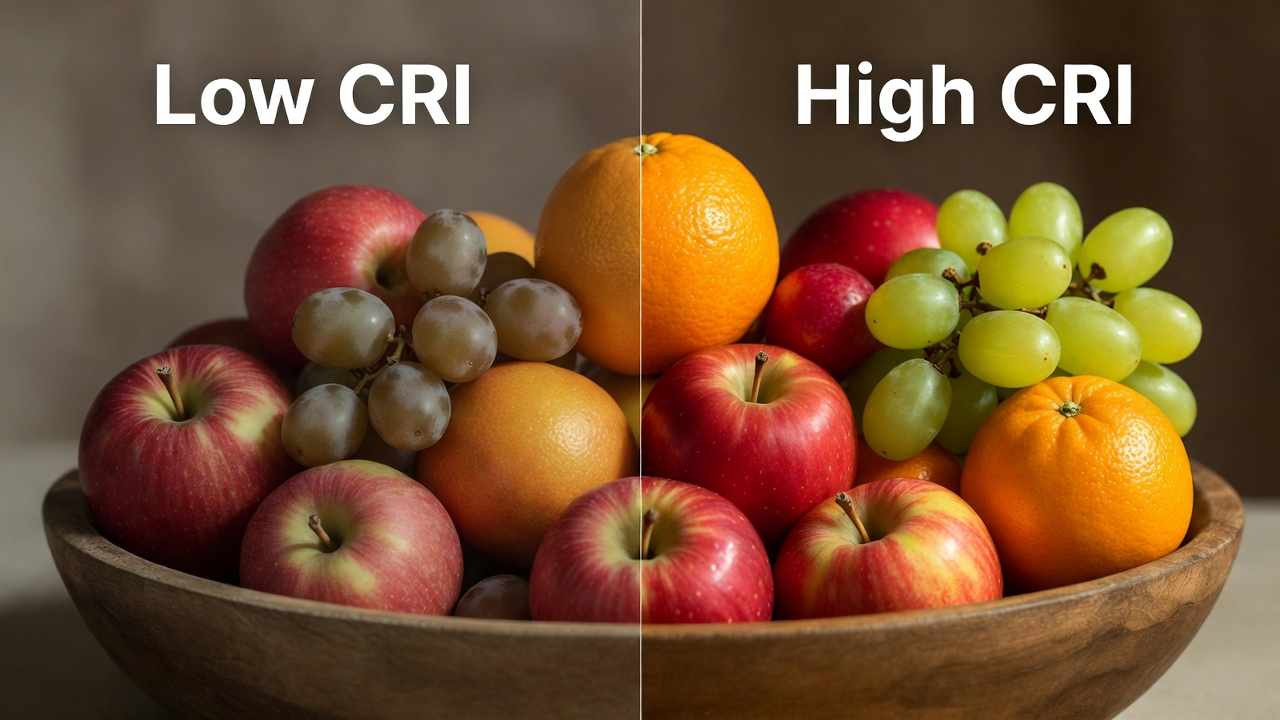 ค่า CRI (Color Rendering Index) คือตัววัดว่าแสงจากหลอดไฟนั้นทำให้เราเห็นสีของวัตถุได้สมจริงแค่ไหน (มีค่าตั้งแต่ 0-100)