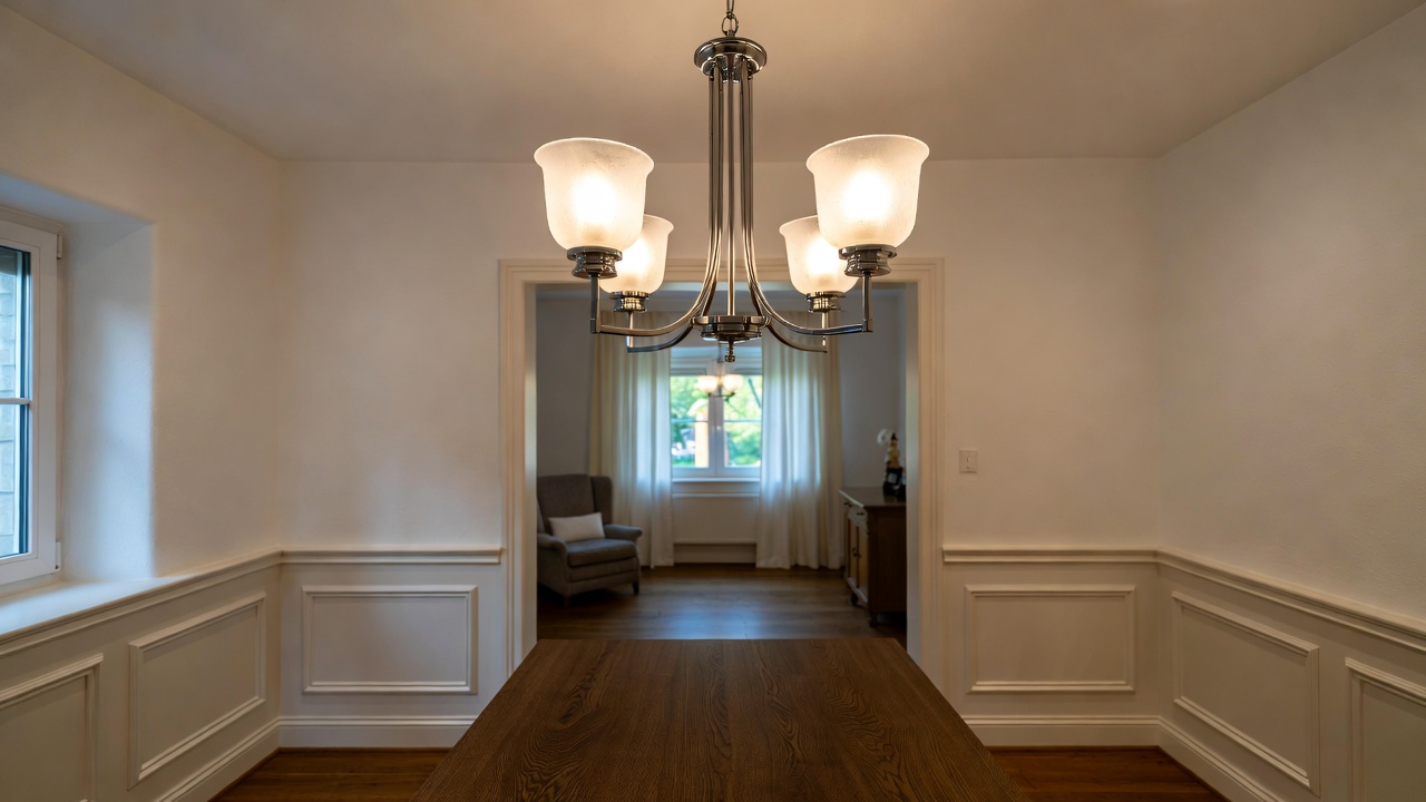 • กฎความกว้าง: หากแขวนเหนือโต๊ะกินข้าว ตัวโคมไฟควรมีความกว้างประมาณ 1/2 ถึง 2/3 ของความกว้างโต๊ะ เพื่อไม่ให้ดูเล็กหรือใหญ่จนเกินไป