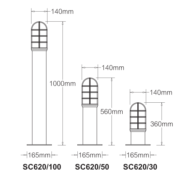 Lunar โคมไฟสนาม รุ่น SC620 (Bollard Aluminium grid cover)