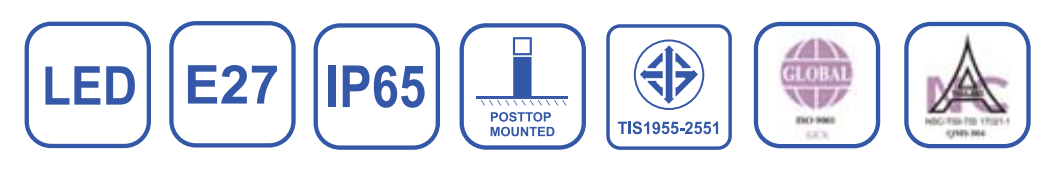 การติดตั้ง: ติดตั้งบนหัวเสา (Post-top) ขนาดช่องเสียบเสา 75 mm