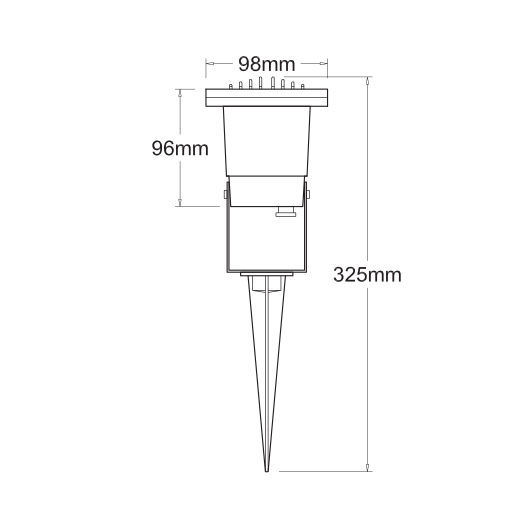 ขนาดตัวโคม: เส้นผ่านศูนย์กลางหน้าโคม 96 mm, ความสูงรวมขาปัก 325 mm
