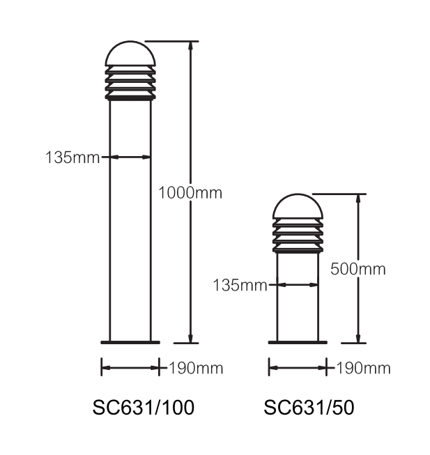 Lunar โคมไฟสนาม รุ่น SC631 (Bollard Louver, Round Top)