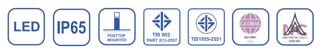 เหมาะสำหรับการใช้งานภายนอกอาคาร (Exterior use) เช่น ถนนสาธารณะ (Street), สวนสาธารณะ (Park), ทางเดินเท้า (Footpath), ลานจอดรถ (Carpark)