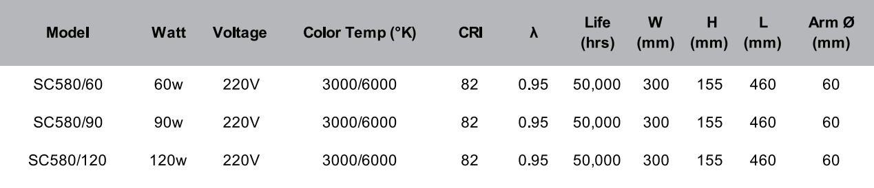 โคมไฟถนน LED รุ่น SC580 (PRIMA) ออกแบบมาเพื่อประสิทธิภาพการส่องสว่างสูงสุดสำหรับพื้นที่ภายนอก