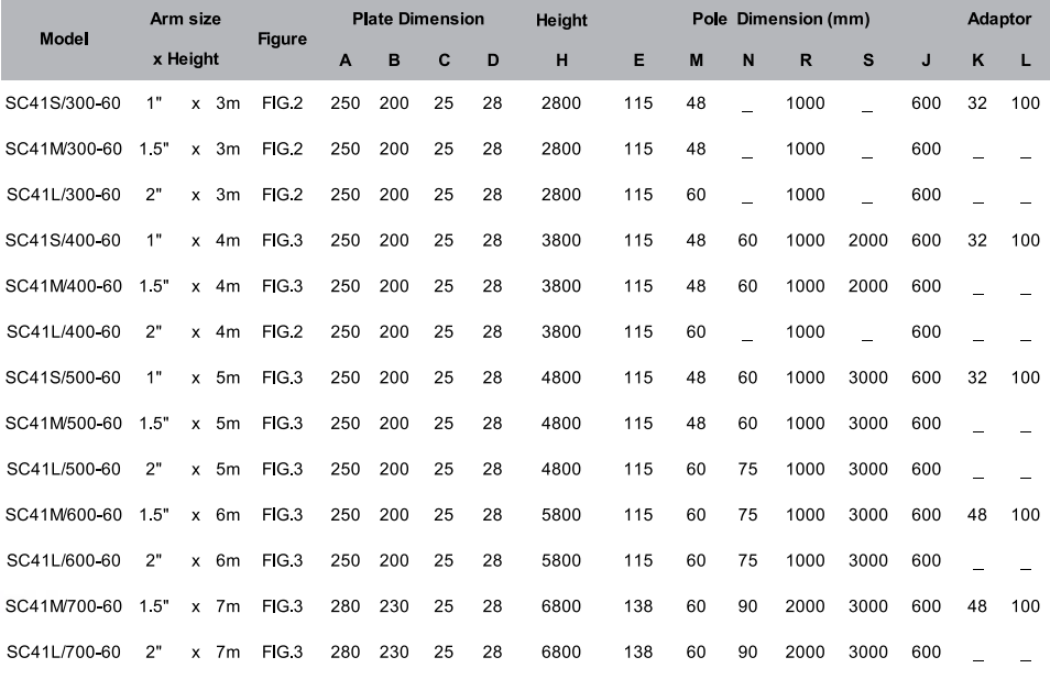 เสาไฟถนนรุ่น SC40 (เสาตรง) และ SC42 (เสากิ่งคู่)