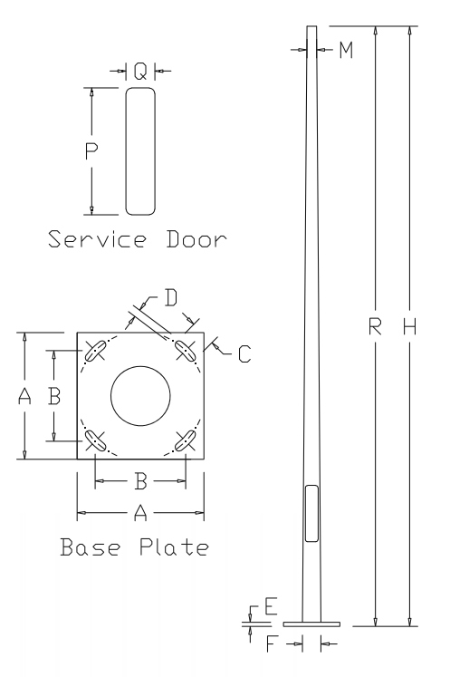 SC60/900: สูง (H) 9.0 m | ขนาดโคน (F) 205 mm | ปลายกิ่ง (M) 76 mm