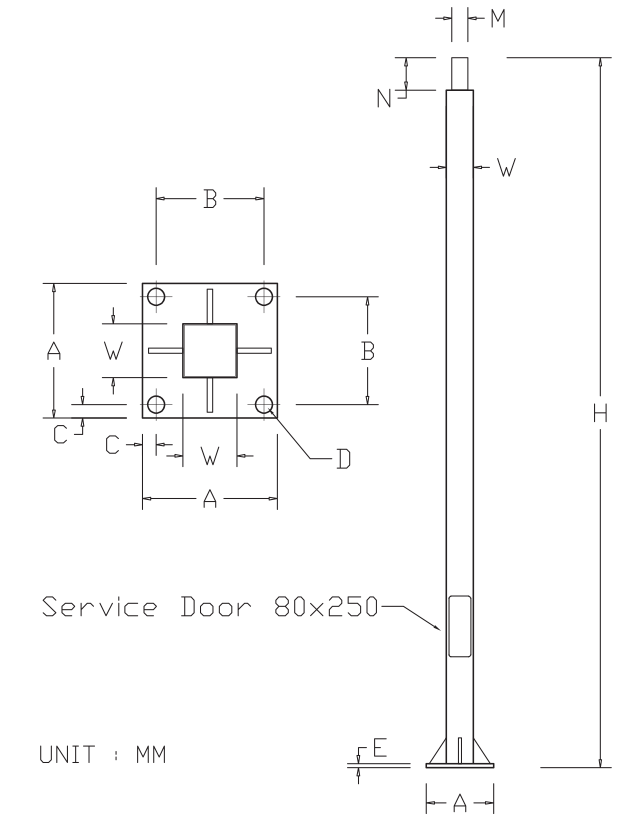มีช่องเซอร์วิส (Service door) บริเวณโคนเสาเพื่อความสะดวกในการติดตั้งและซ่อมบำรุงอุปกรณ์ควบคุม