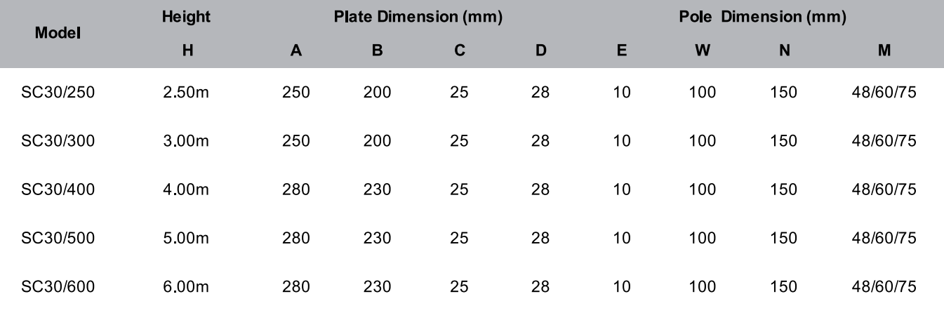 ตัวเสาผลิตจากเหล็กกล้าคุณภาพสูงพ่นสีหรือชุบกัลวาไนซ์เพื่อป้องกันสนิม เหมาะสำหรับการใช้งานกลางแจ้งทุกประเภท